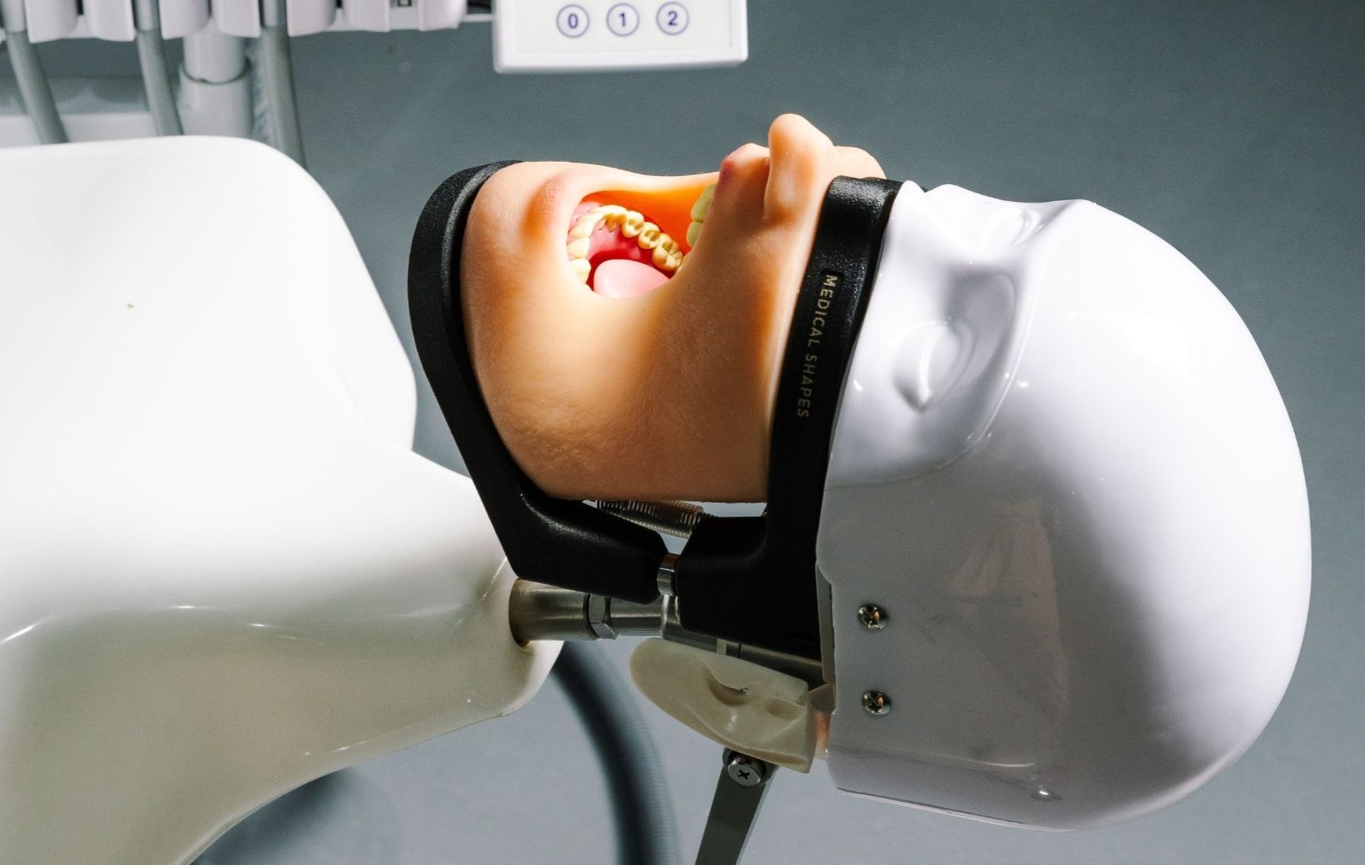 Unidad completa de entrenamiento odontológico que integra fantoma y componentes de simulación en un solo módulo funcional.